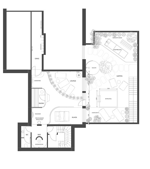 Zusammen mit der EFP Planungs GmbH wurde ein Konzept für den familiengeführten Spa in Deutschland entwickelt, das einen exklusiven Rückzugsort schafft, der Körper, Geist und Seele in Einklang bringt. Durch die geschickte Anordnung von Holzlamellen und textilen Raumteilern gliedert sich der Bereich in sechs harmonisch verbundene Zonen, die eine fließende Raumwirkung erzeugen. Die Kombination aus organischen und geometrischen Formen schafft eine ästhetische Balance und eine einladende Atmosphäre. Neben der physischen Regeneration bietet der Spa auch Raum für mentale Entspannung und innere Ruhe. Hochwertige Materialien, sanfte Farb- und Lichtkonzepte sowie durchdachtes Design machen ihn zu einem Ort, an dem Familie und Gäste neue Energie schöpfen können.